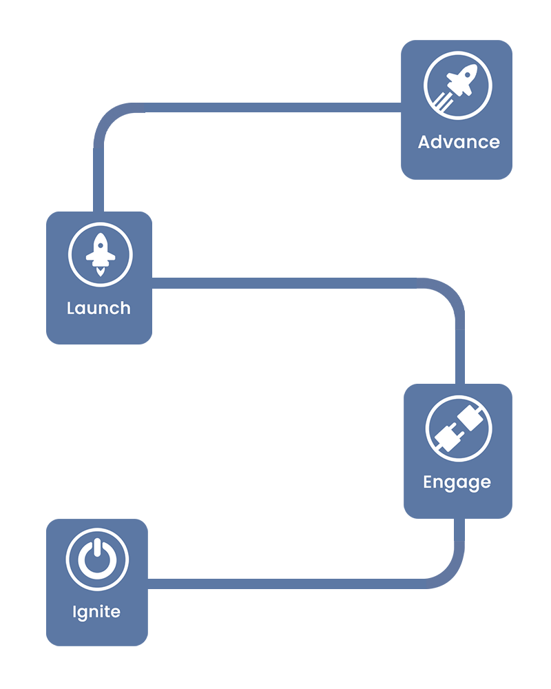 To maximise efficiency, we offer specialised services aligned with your company's developmental stage: ignite, engage, launch, and advance. Whether you're refining a concept or navigating the path to market exit, we provide strategic guidance and actionable insights, ensuring your brand's long-term success. We're not just partners; we're committed allies in your brand's growth journey.